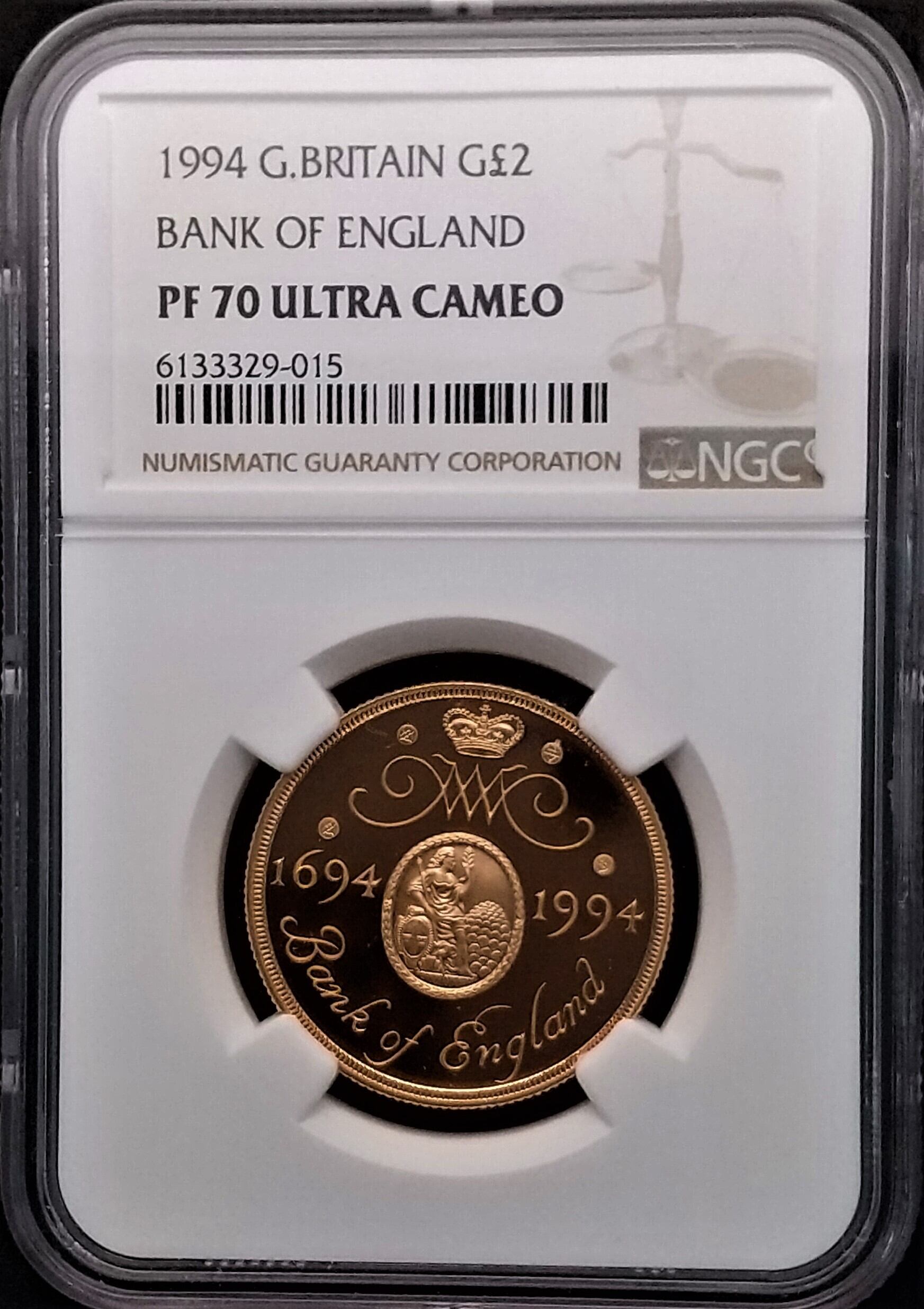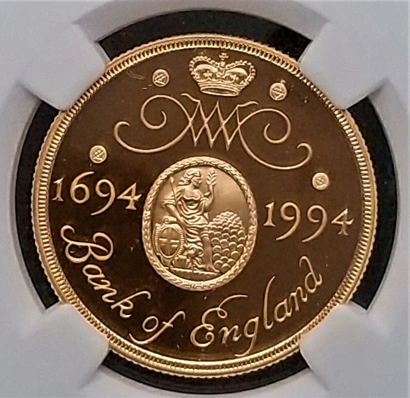 1994年 イギリス イングランド銀行創立300周年 2ポンド 1/2オンス プルーフ金貨 NGC PF70UC 元箱/COA付