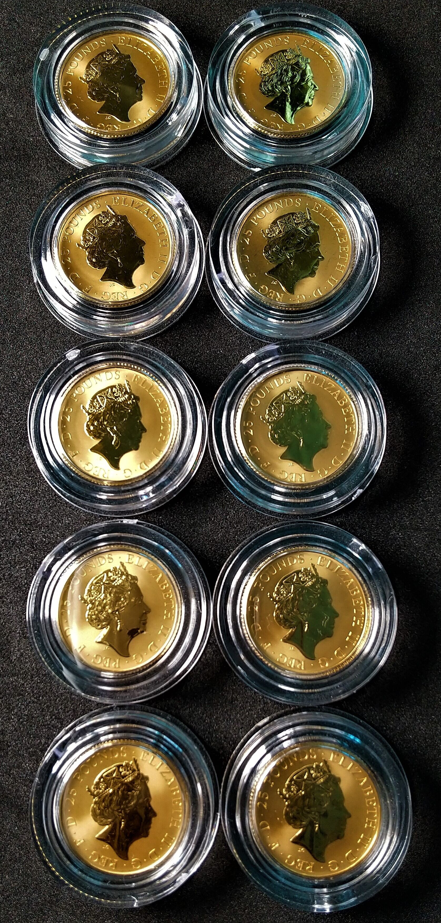 ★値下げしました!★2021年 イギリス ロイヤルミント発行 クイーンズビースト 25ポンド 金貨 10枚セット
