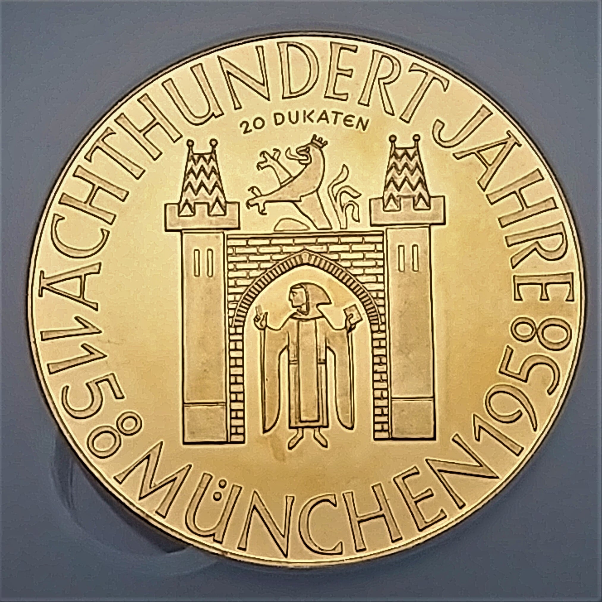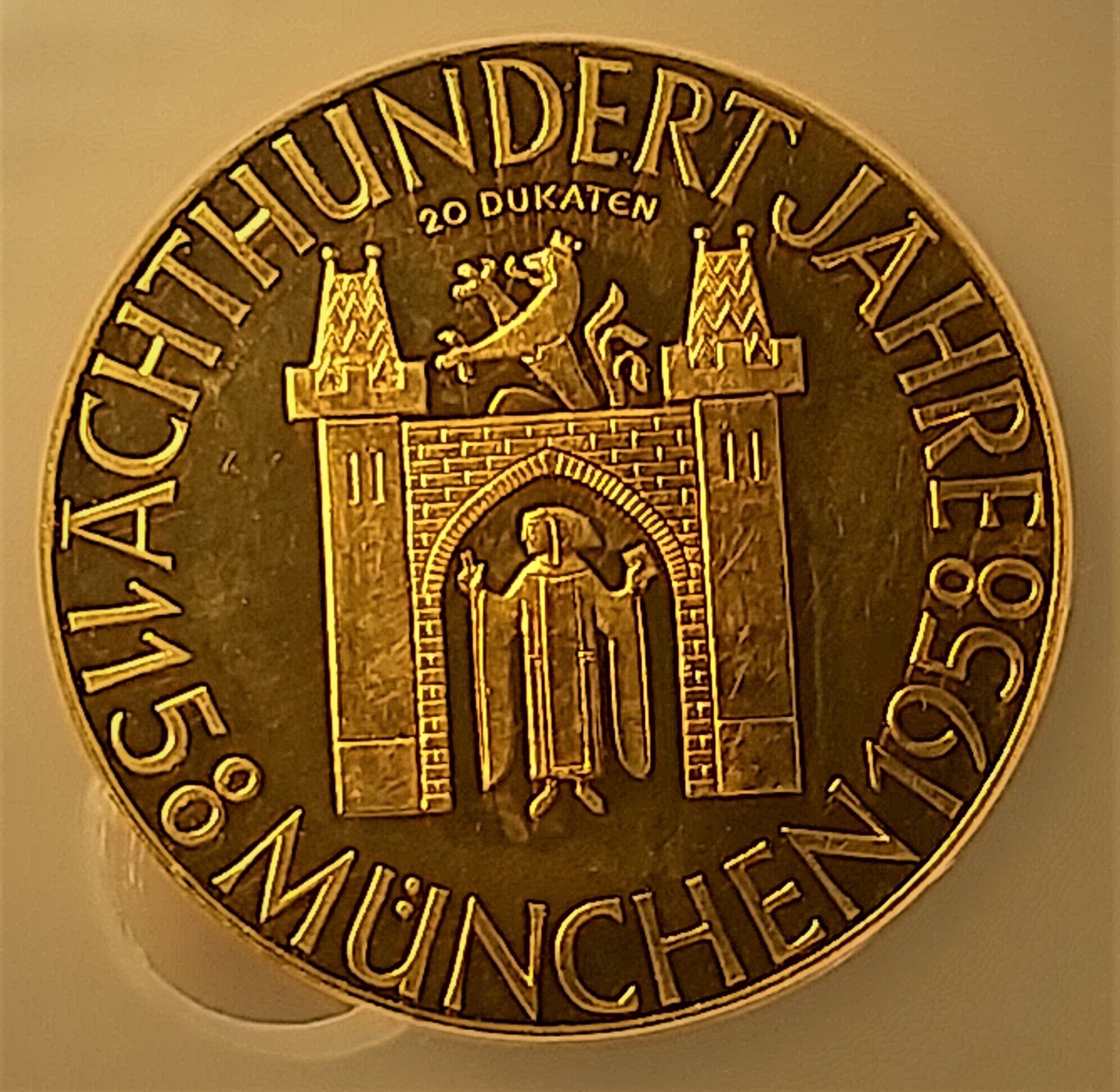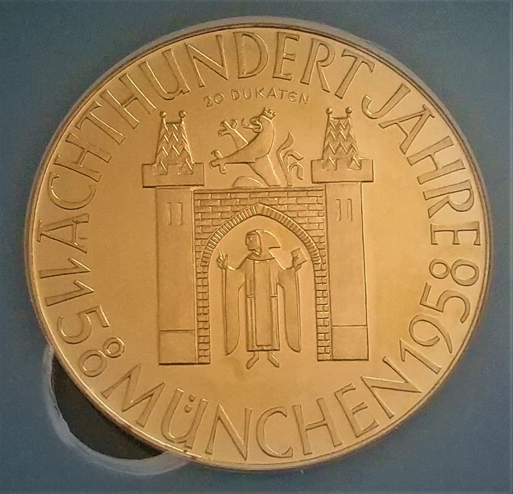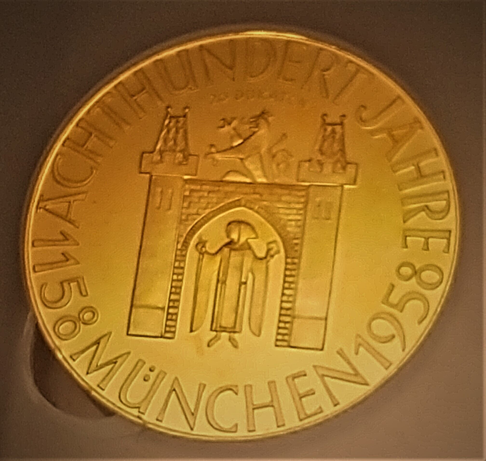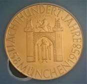 1158年にミュンヘンが創建されてから800周年を記念して1958年に発行されたゴールドメダルです。