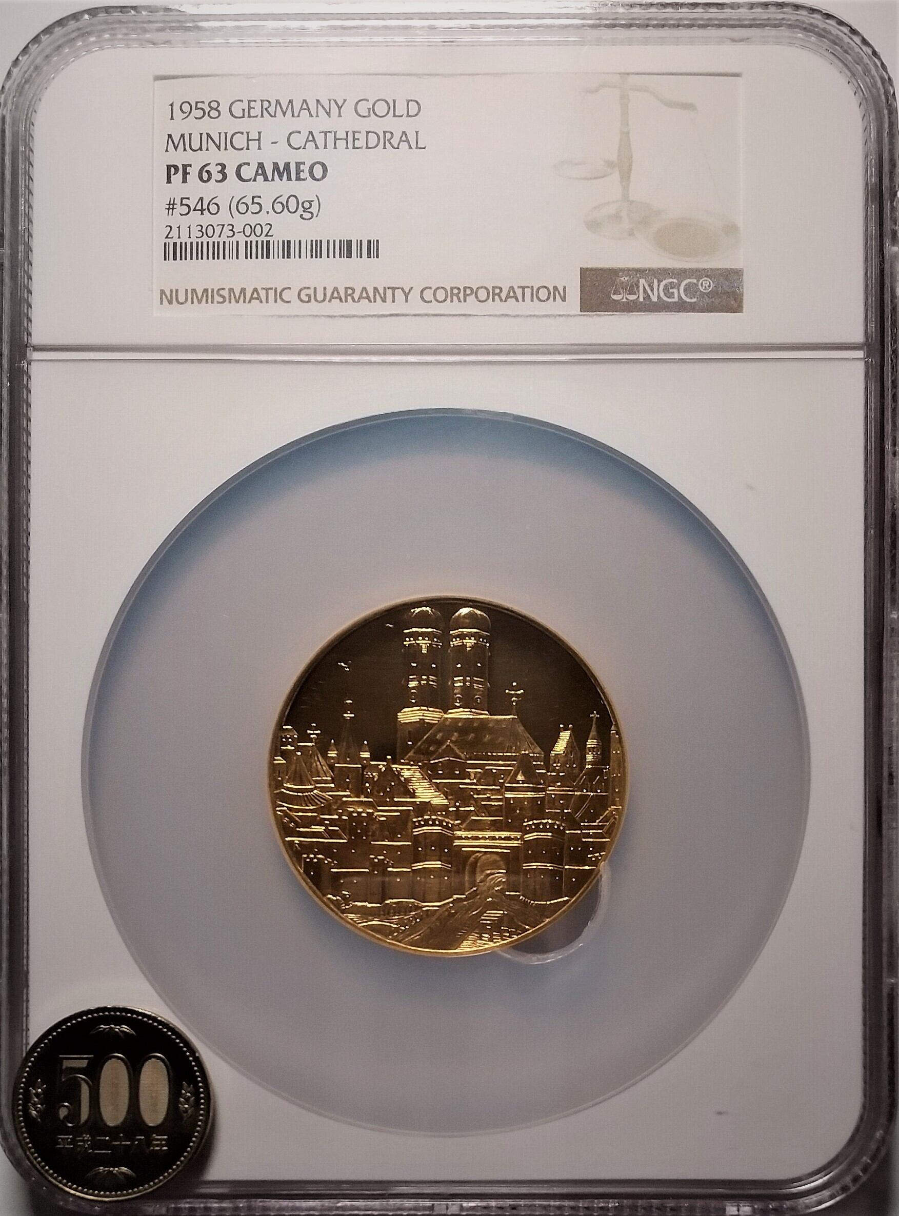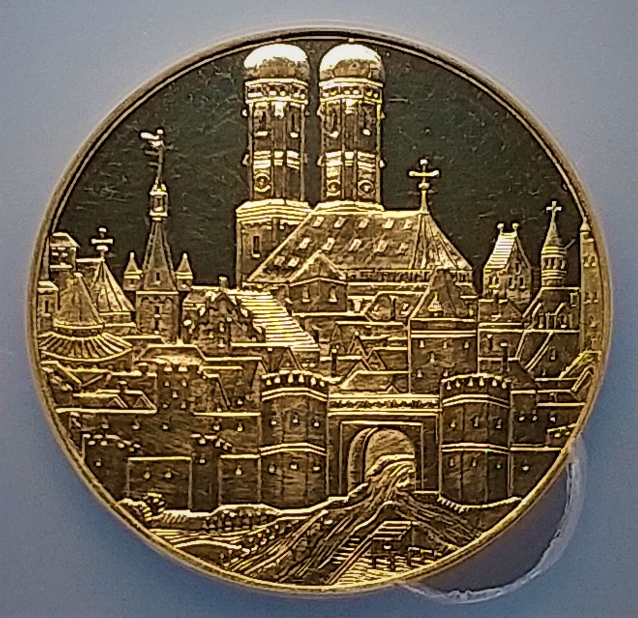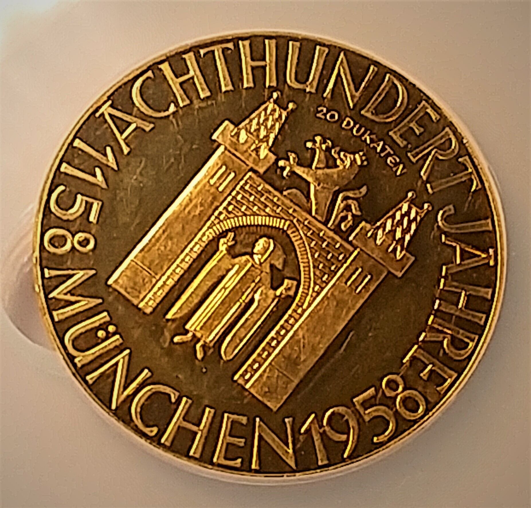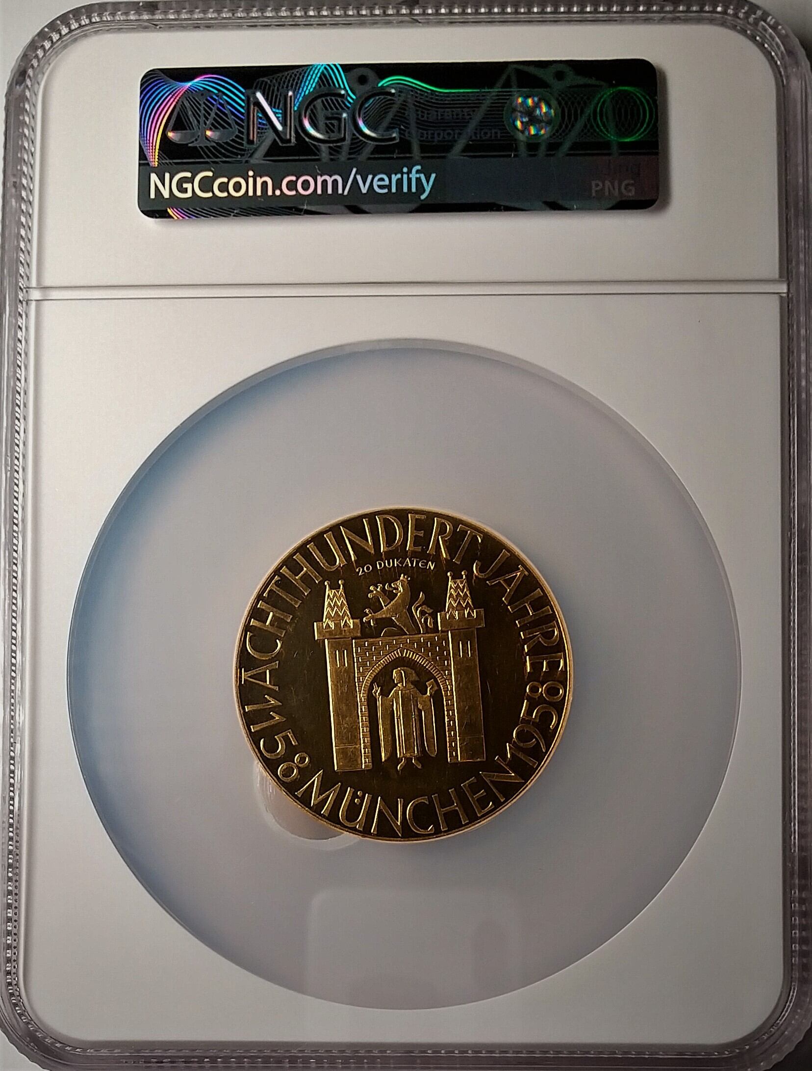 ★値下げしました!★1958年 ドイツ ミュンヘン創建800周年 20ダカット ゴールドメダル NGC PF63 CAMEO 鑑定数1枚のみの超絶希少高鑑定大型金メダル