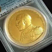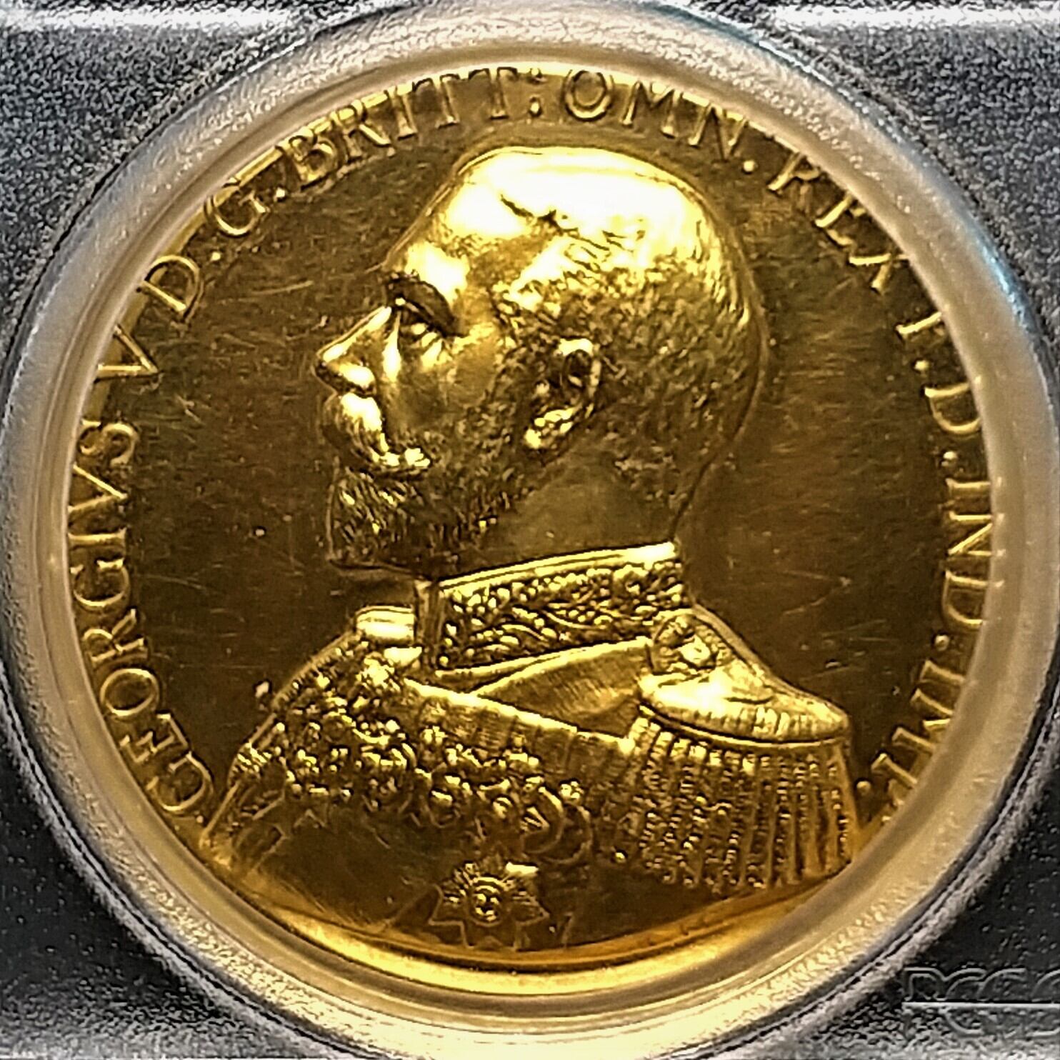 直径44.5mm、重量56.23gの大型金メダルであり、端正なジョージ5世の肖像とあいまって、素晴らしい逸品となっております。