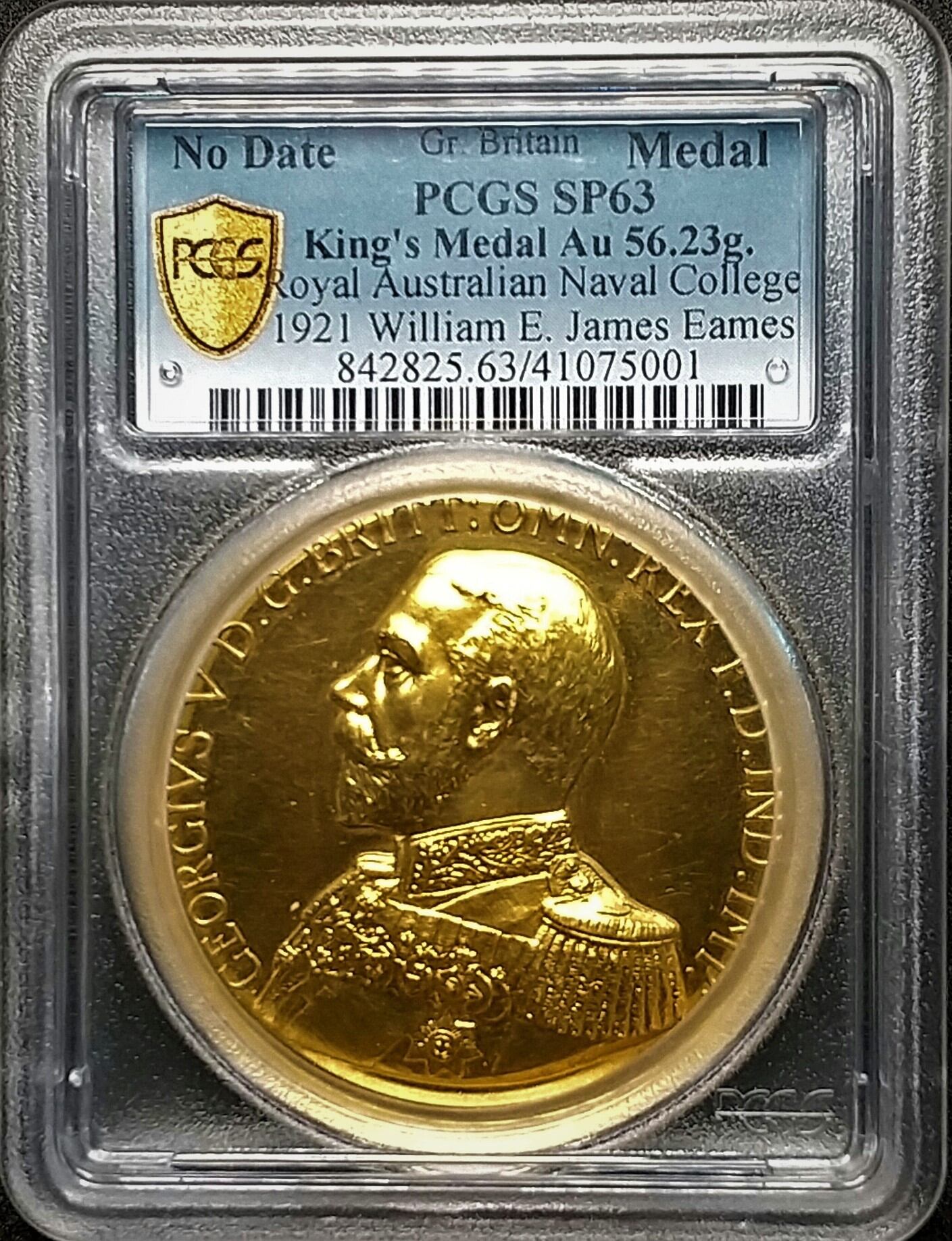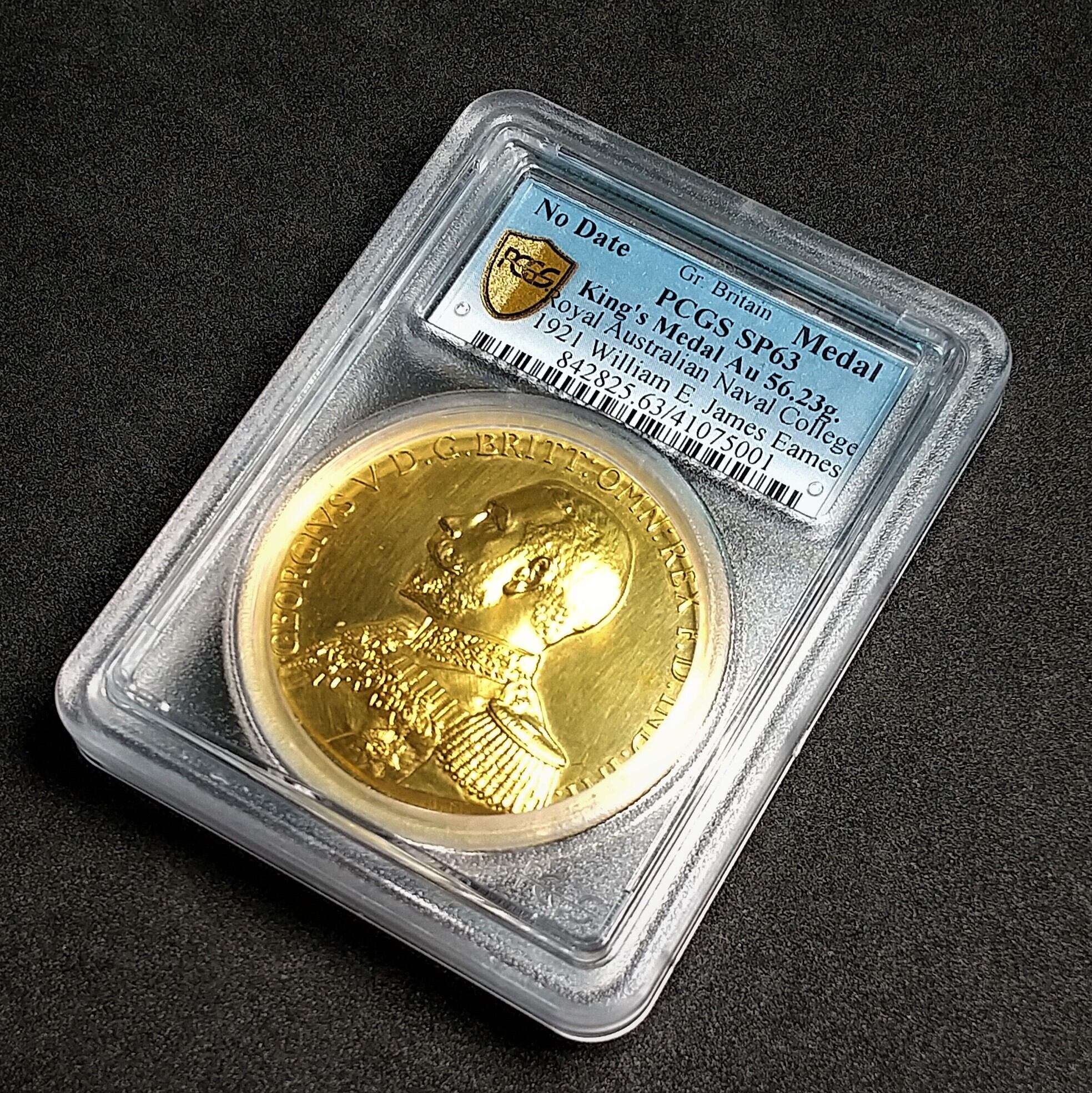 ★NEW★鑑定数1枚の大型ジョージ5世 金メダル★1921年 イギリス ジョージ5世 王立オーストラリア海軍士官学校金メダル 56.23g PCGS SP63