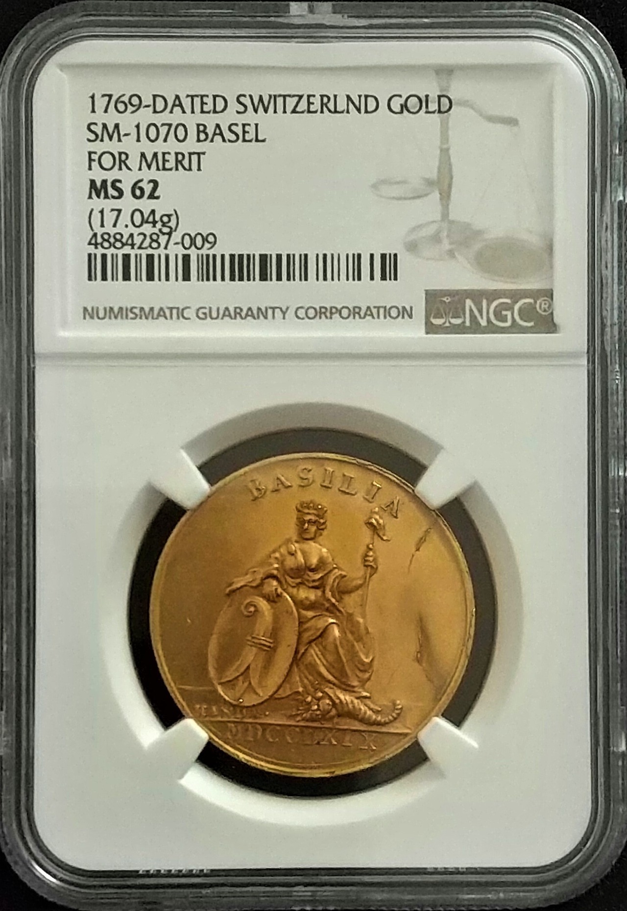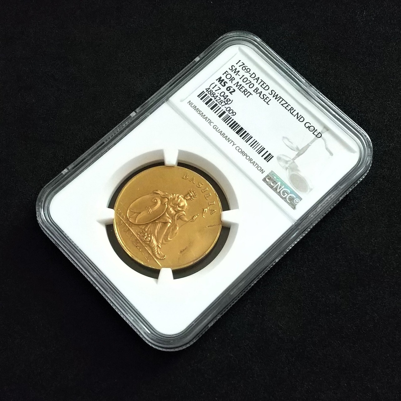 ★値下げしました!★鑑定数2枚の貴重な18世紀スイス5ダカット金貨★1769年 スイス バーゼル 5ダカット金貨 NGC高鑑定グレードMS62