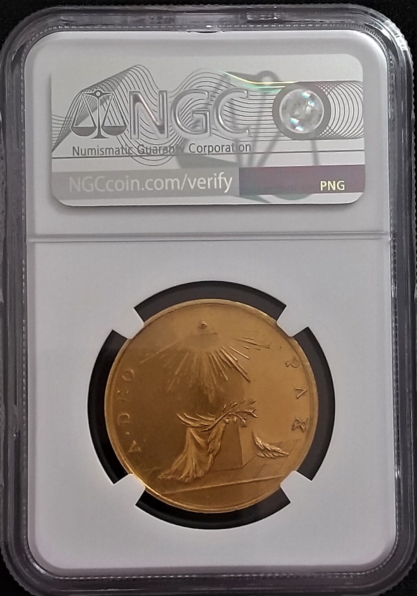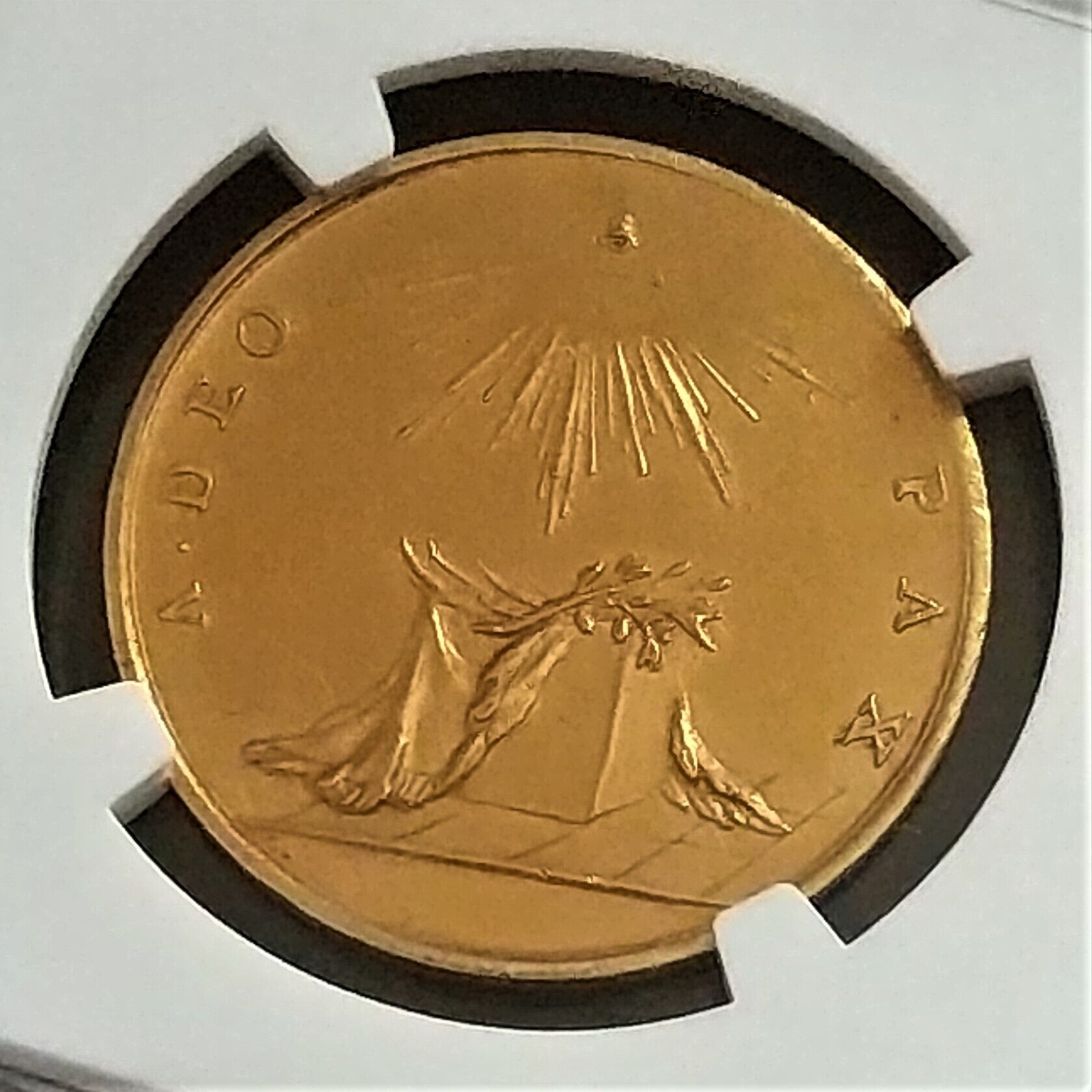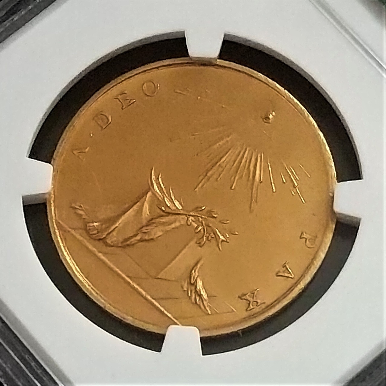 これぞスイスのアンティークコインというべき素晴らしいデザインの大型5ダカット金貨であり、しかも、鑑定数がわずか2枚しか存在しない、とても貴重な逸品です。