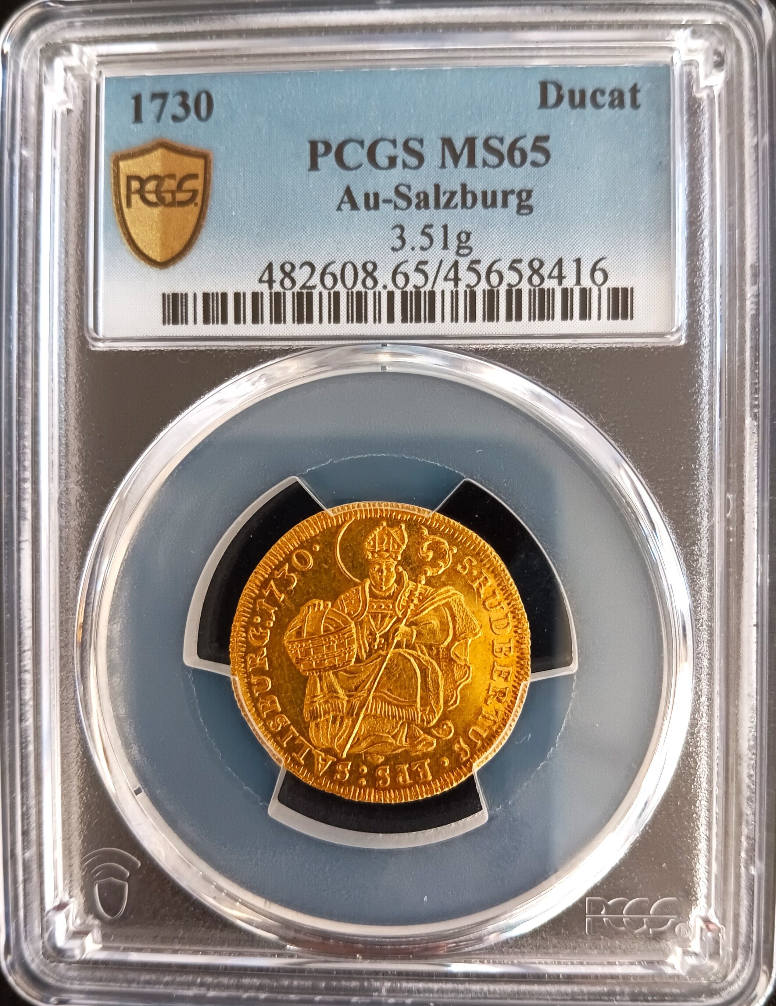 ★NEW★PCGS鑑定枚数わずか1枚!1730年 オーストリア ザルツブルク ダカット金貨 PCGS MS65
